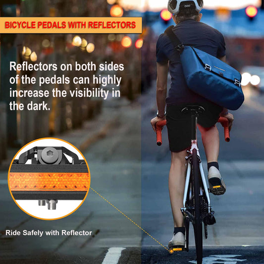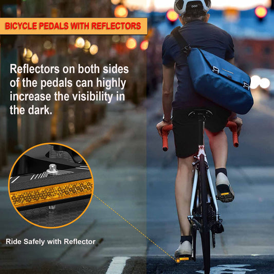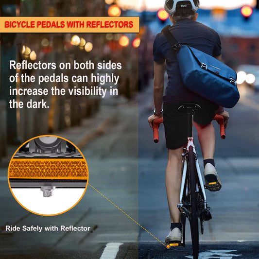 Bike Pedals 9/16 Inch - Bicycle Pedals with Reflectors - 3 Sealed Bearings MTB Pedals Wide Platform Pedals for Mountain Bike, BMX, Road Bike Pedals