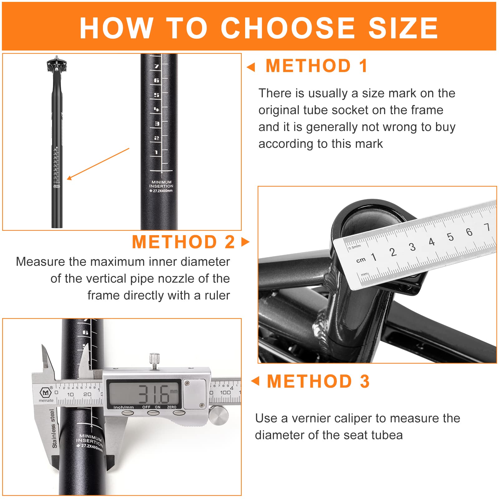 - 【Wide Applicability】: GEWAGE bike Seat post is 400mm in length and comes in several widths including the 27.2mm 30.9mm and 31.6mm most commonly found on your bikes. Suitable for most road bikes, mountain bikes, fixed gear bikes, track bikes, BMX, downhill bikes and so on. NOTE: Please measure and check the diameter of your bike frame's seat tube before ordering to ensure you choose the right size.