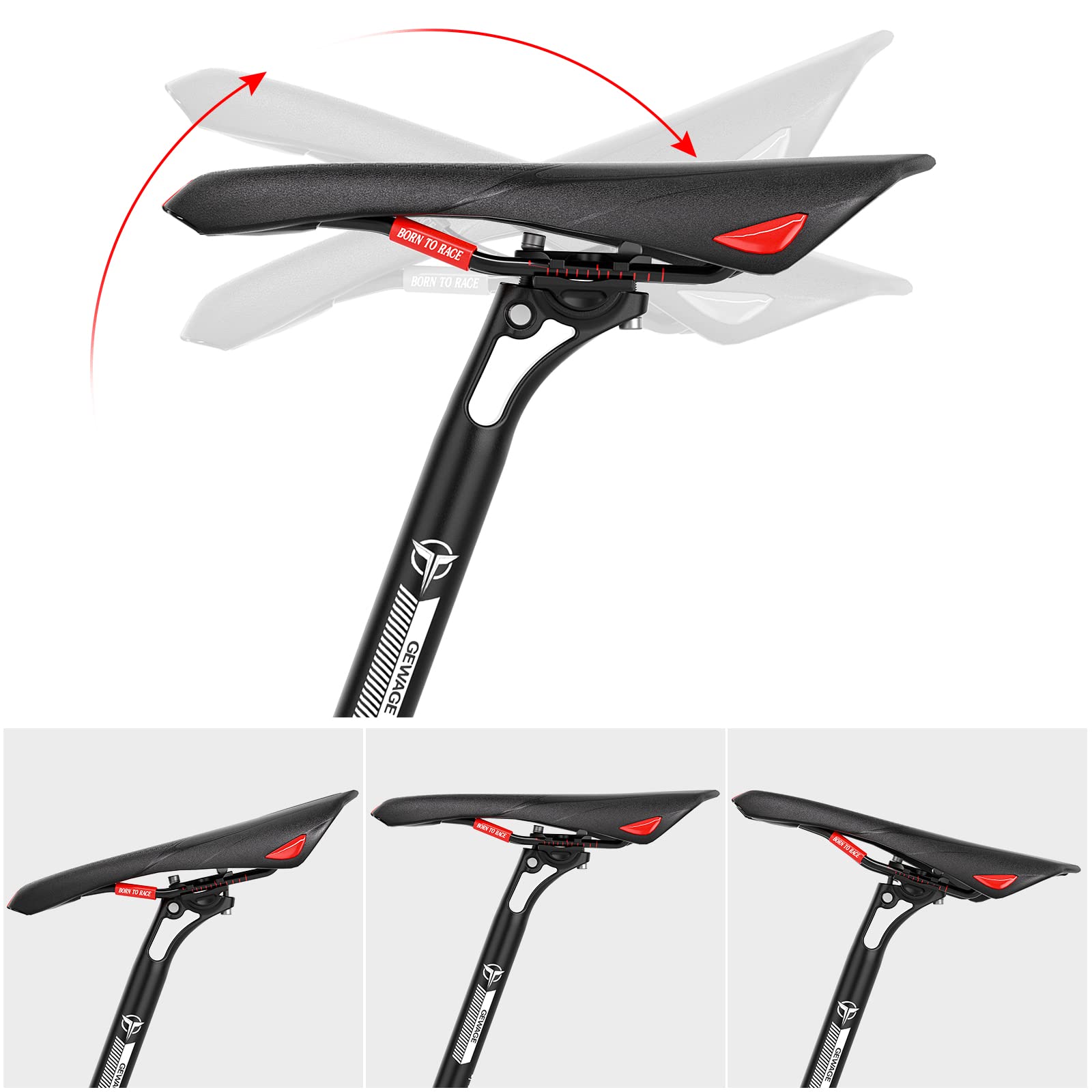 - 【Comfortable Riding】: As one of the few contact points on a bicycle, the saddle has a crucial role as it bears most of the rider’s weight. An out-of-position saddle means wasted energy with every pedal stroke. You may want to adjust the height or angle of your bike seat to improve your comfort or riding position. Better fit means better performance to make you faster, GEWAGE bike seat post will help you stay comfortable and focused on your ride.